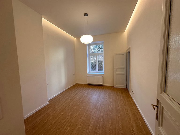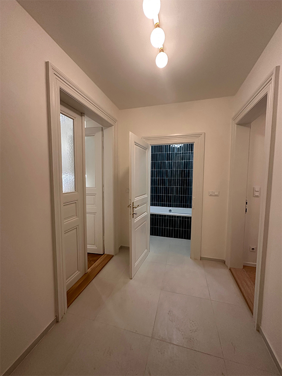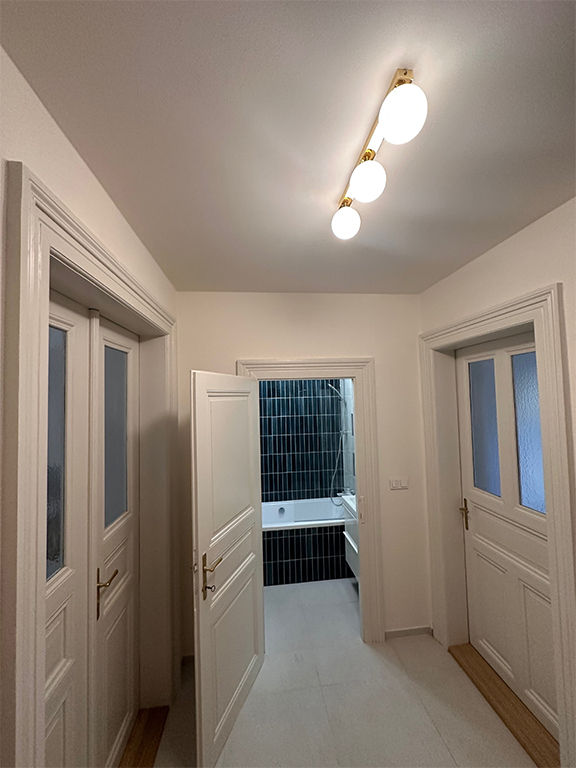 Položíme podlahy. Obložíme, omítneme a vymalujeme stěny. Zajistíme případné renovace s ohledem na zachování původních materiálů a povrchů.
