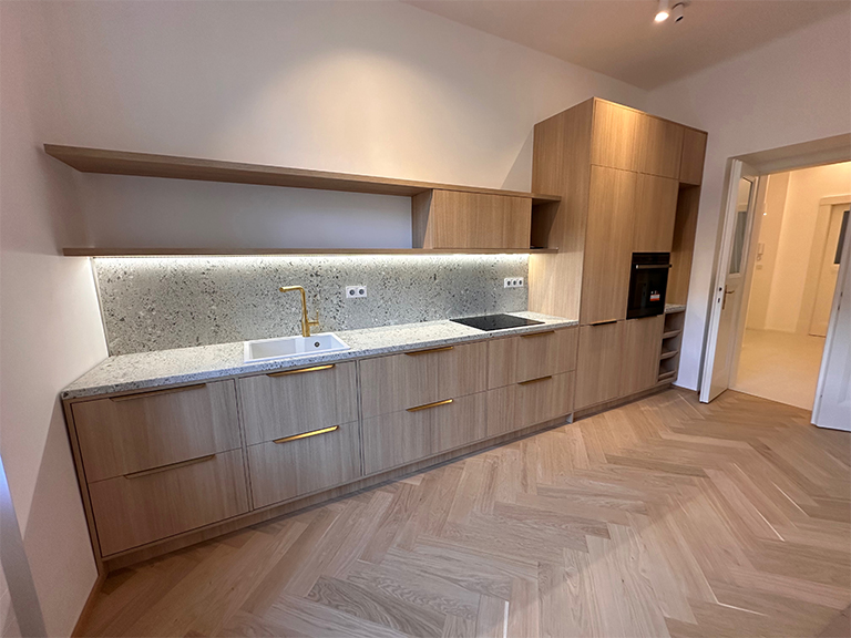 Podíváme se na váš byt, vyslechneme si vaše představy a celý projekt naplánujeme. Zvážíme při tom jak estetické, tak i funkční požadavky.